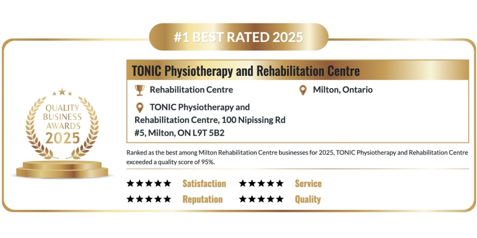 Milton, Ontario — June 25, 2025 — Tonic Physiotherapy & Rehabilitation Centre proudly announces that it has been named the Best Rehabilitation Centre in Milton, Ontario at the 2025 Quality Business Awards. These awards recognize Canadian businesses that excel in patient care, innovation, and community impact, scoring 95% or higher in overall quality